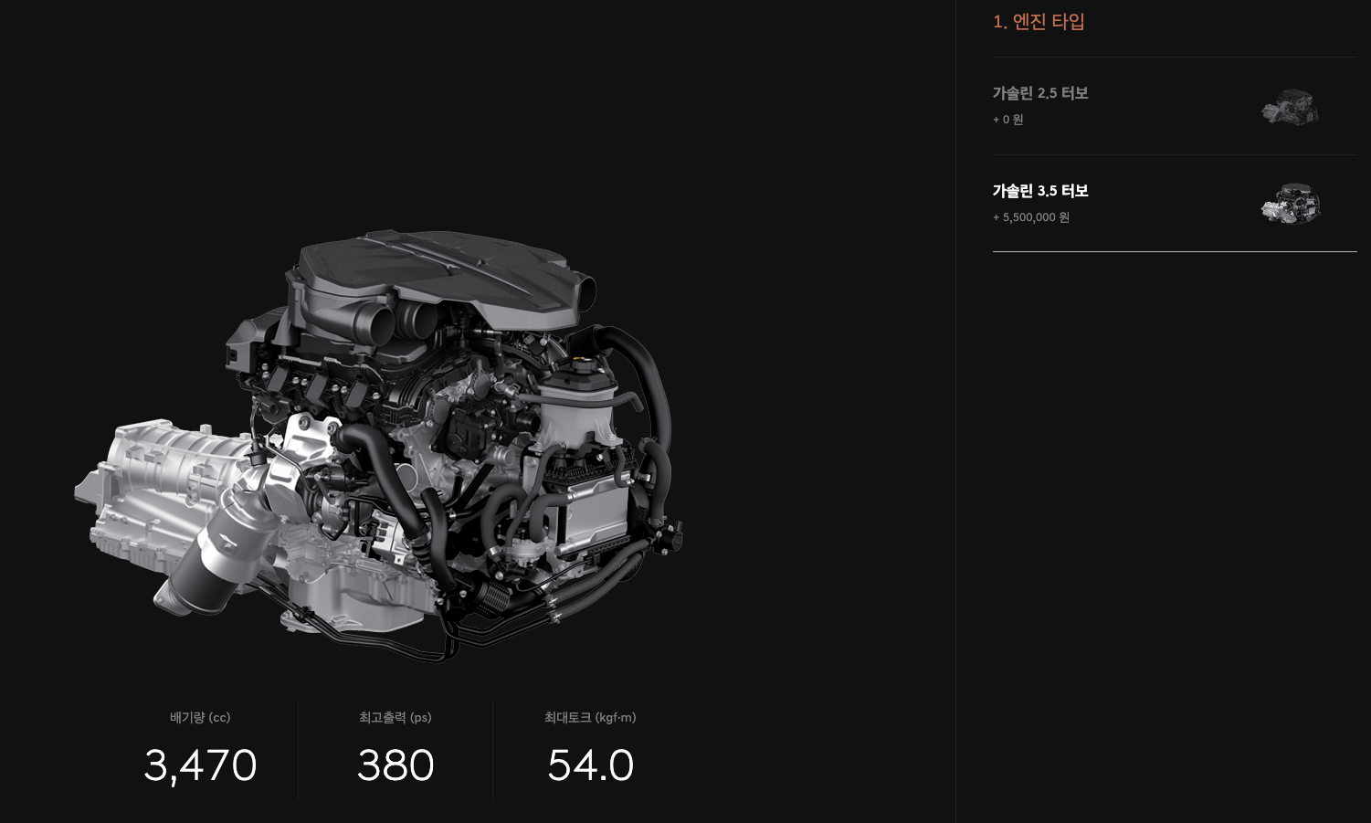 두개의 엔진 이외에도 선택할 사항들이 많이 있습니다. 2WD & AWD, 5인승 & 6인승 & 7인승, 다양한 옵션등등