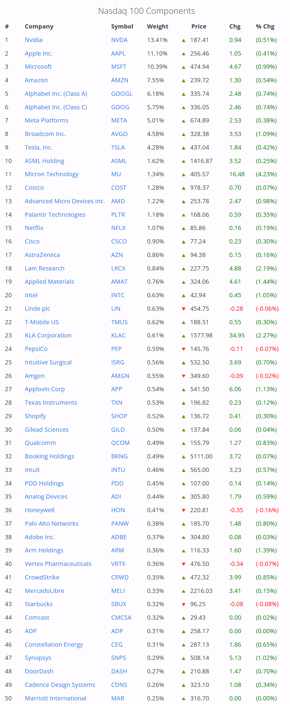 <<나스닥 100 시가총액 순 리스트>> 2026년 1월 기준