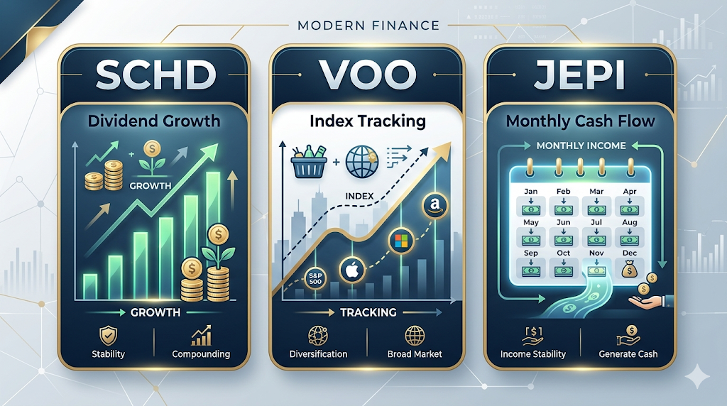 SCHD는 배당을 꾸준히 늘려온 우량 기업 위주라서, 배당과 성장의 균형을 원하는 초보자에게 많이 거론됩니다. VOO는 미국 대표 대형주 전체 흐름을 담는 가장 기본적인 선택지입니다. JEPI는 현금흐름 체감이 빠르다는 장점이 있지만, 구조를 충분히 이해하고 접근하는 편이 좋습니다.